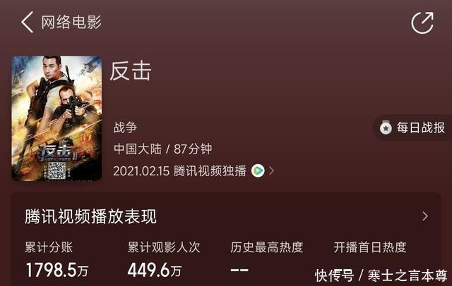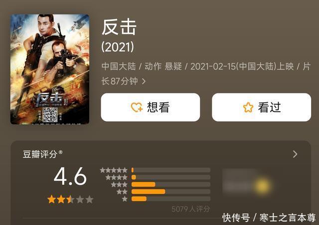 还有赵文卓。 比起李炳渊,赵文卓的处境更悲哀,也曾辉煌过,但后来却被甩在时代身后。 2021年,赵文卓同样是自导自演了电影《反击》,这部电影几乎是1:1复刻了吴京的《战狼1》,也想复制他的成功。 结果这一腔热血却只换来了1798万票房分账和4.6分的结局。
